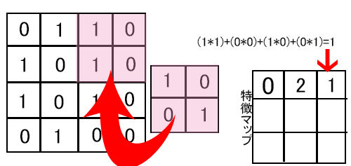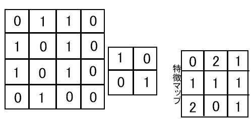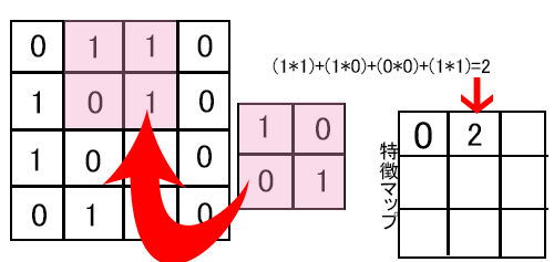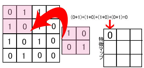 画像にはフィルタという小さな画像をかけ、畳み込み演算を行う。